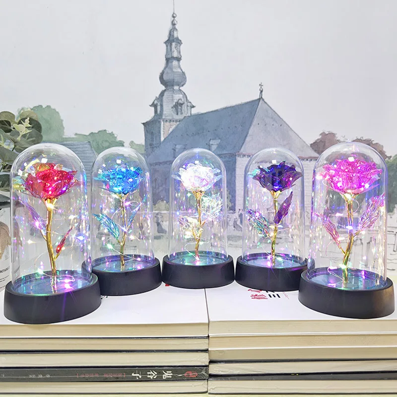 Surprise someone special with this elegant eternal rose gift, designed to symbolize lasting love and timeless beauty 🌹✨ Encased in a clear glass cover, the foil rose is beautifully displayed and enhanced with soft LED lighting, creating a warm and romantic glow that makes it perfect for bedrooms, living rooms, bedside tables, or special event décor.